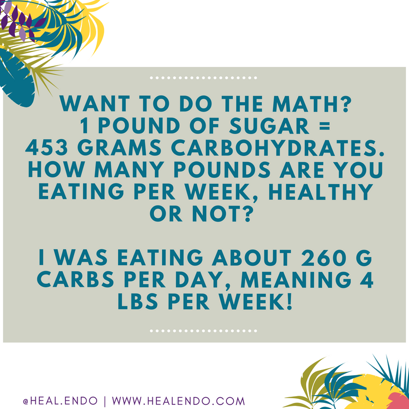 Don't worry, I'm not judging, this is exactly how I used to eat, and I was so convinced I was eating healthy (they all said so!) I could not believe I was consuming up to 4 pound of sugar per week, albeit “healthy sugar”. I also couldn't believe I could stop, but oh how my life changed when I cut the sweet crap. Even though I felt at the time like I was dying a little inside, I now couldn't imagine what eating that way again would do to me -- Oh wait, yes I can, it would pull me right out of endo remission. [That's how significantly blood sugar dysregulation can affect us endo girls, remember that]